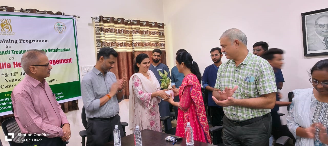 The Zoo Authority of Maharashtra, in collaboration with the Wildlife Research & Training Centre, Gorewada, and the Forest Development Corporation of Maharashtra Ltd., successfully conducted a two-day training programme on "Advances in Wildlife Health Management" from July 11 to July 12, 2024, at the Wildlife Rescue Centre, Gorewada, Nagpur. This programme was specifically designed for veterinarians from zoo and rescue centres, as well as transit treatment centres, to enhance their knowledge and skills in managing wildlife health.